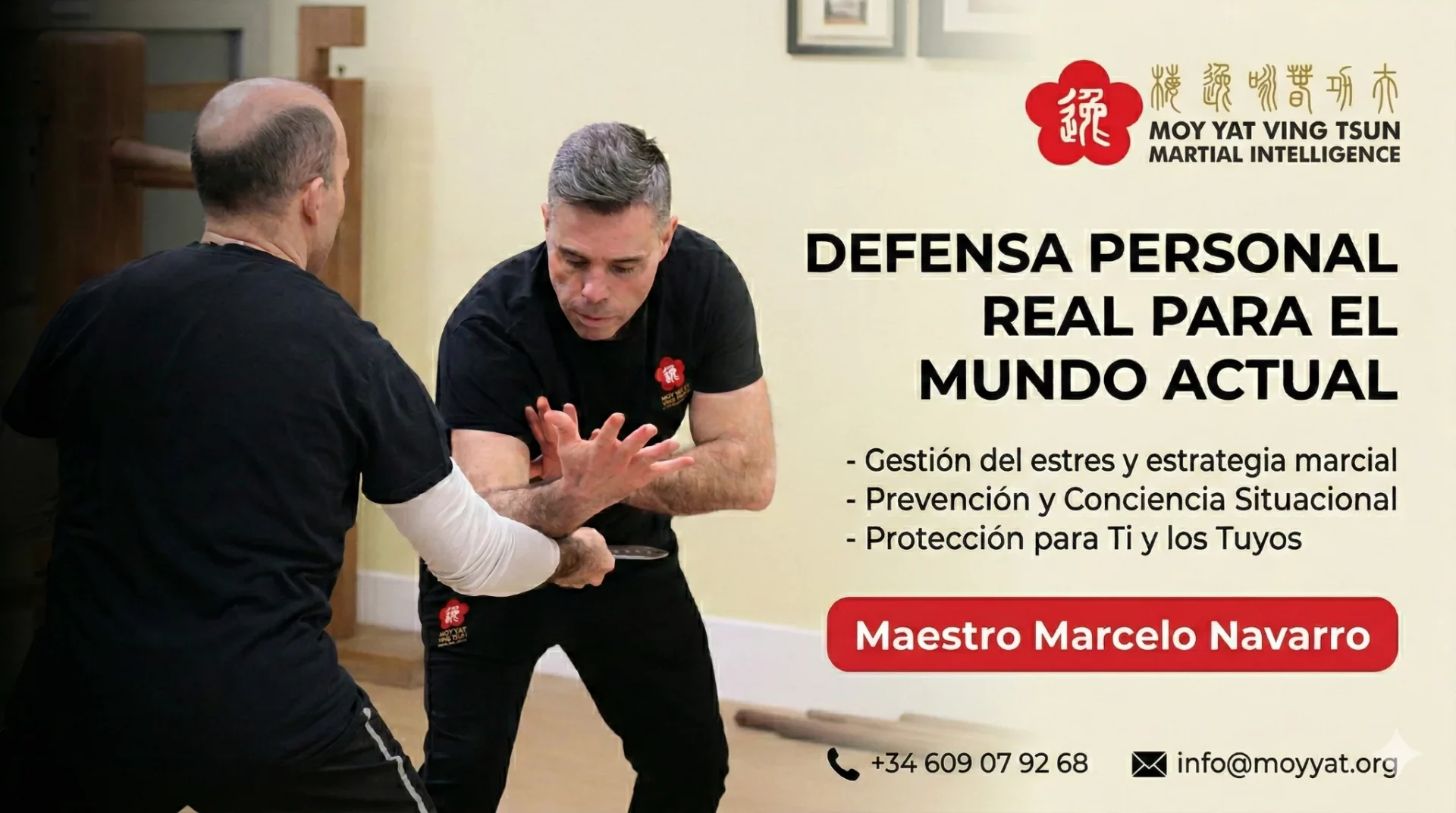 Soy Marcelo Navarro, instructor de Moy Yat Ving Tsun Martial Intelligence Europe (MYVTMI). Mi enfoque se centra en el Ving Tsun como sistema de desarrollo físico, mental y estratégico: no solo defensa personal, sino una manera razonable de entrenar criterios, calma y eficacia.